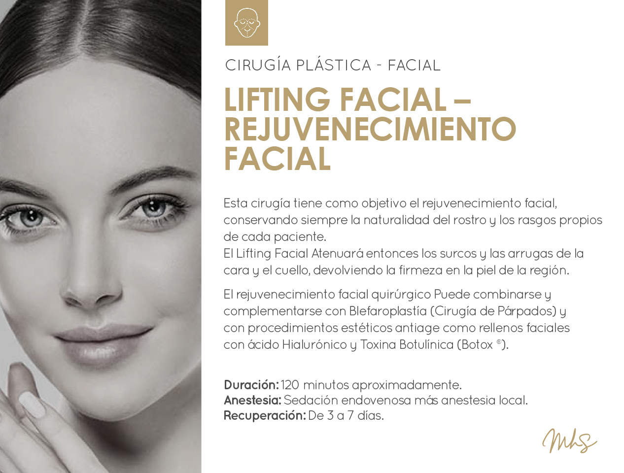 Rejuvenecimiento facial, conservando siempre la naturalidad del rostro y los rasgos propios de cada paciente.
